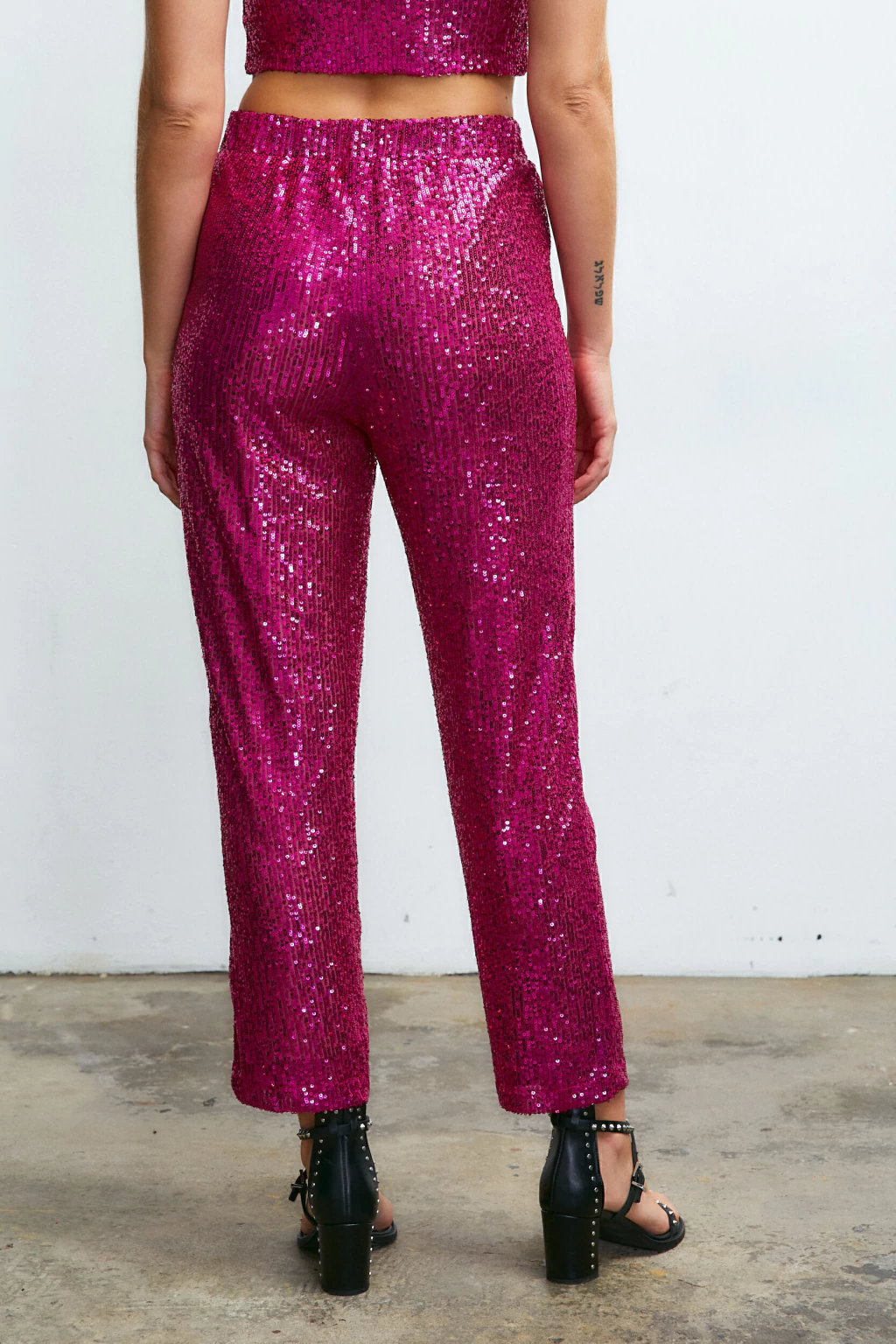 Pantalon con cintura con elastico. La lentejuela es elastizada, por ende el pantalon cede.