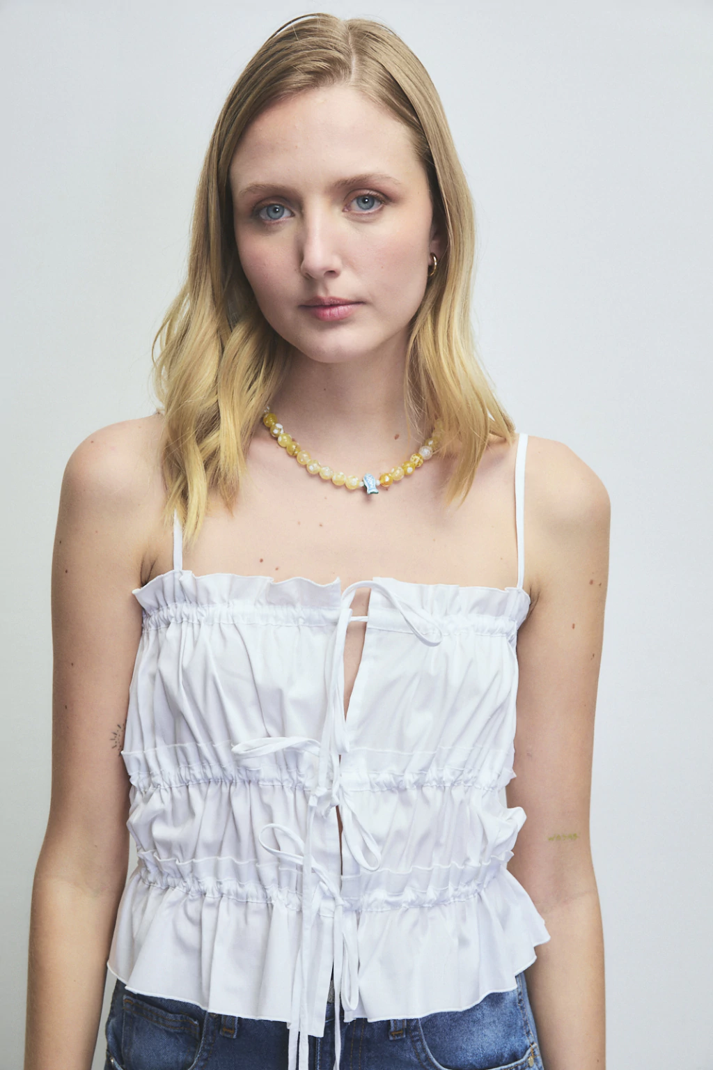 Top Vita fresco y femenino que invita a jugar con distintas combinaciones. Perfecto con jeans para un look descontracturado o con pantalones amplios para un estilo más sofisticado y veraniego.